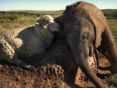 南非的一只孤儿象宝宝辛巴(它的名字的意思是希望)和一只叫做阿尔伯特的绵羊建立...