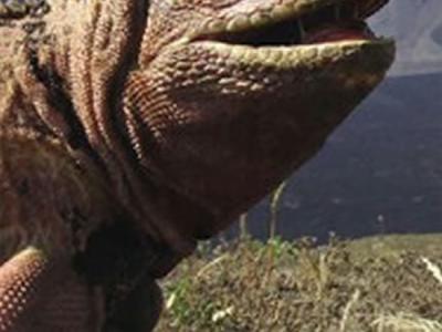 粉红色鬣蜥头部特写 研究人员与粉红色鬣蜥 鬣蜥是一种巨...