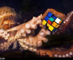 科学家让章鱼玩魔方,以观察出章鱼是否也有“惯用手” 大多数人习惯用右手,...