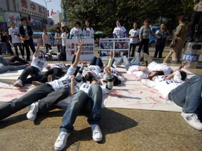 长春动物保护者们在街头表演行为艺术 长春动物保护者们在街头表演行为艺术 &...