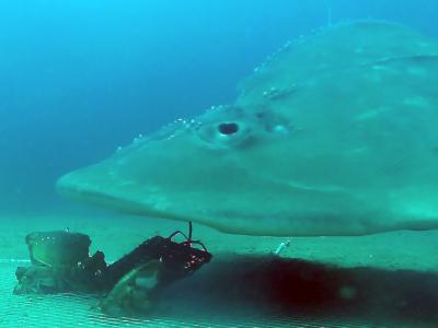水下摄像机捕捉到濒临灭绝的吉他鱼捕食扳手蟹。(阳光海岸大学)(神秘的地球uux.c...