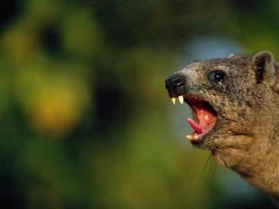 坦桑尼亚塞伦盖蒂国家公园(Serengeti National Park)里,一只雄性岩蹄兔在打呵欠...