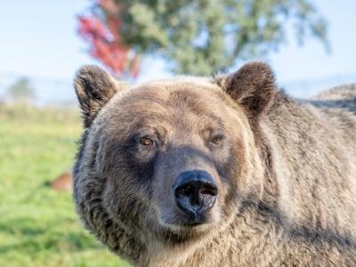 灰熊(照片是一头在华盛顿州立大学熊中心的圈养灰熊)可重达363公斤。PHOTOGRAPH B...