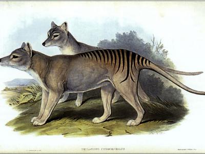 已经灭绝的澳洲代表性动物袋狼。图片来源:Henry Constantine Richter/John Gould ...
