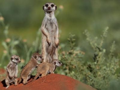 成年狐獴花很多时间教导幼崽如何应对危险的蝎子,也就是它们最喜爱的猎物之一。 PH...