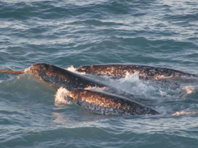 独角鲸长牙的研究表明:由于海冰的减少 它们的饮食习惯和暴露在污染中的情况发生变...