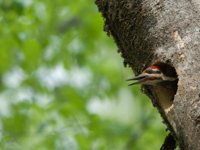 至少有20个物种会将北美黑啄木(pileated woodpecker)的鸟巢做为己用,使这种鸟成...