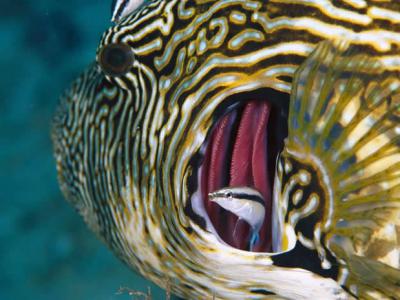 裂唇鱼(Labroides dimidiatus)可能具有从镜中认出自己的能力...