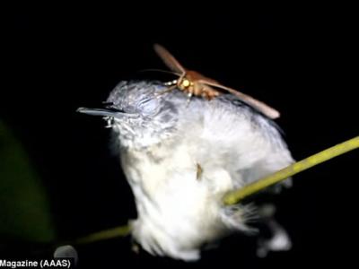 巴西亚马逊发现罕见一幕:热带夜蛾趁黑颏