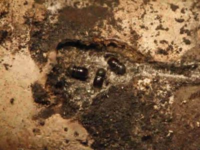 成年雌性菌蠹虫照料它们的真菌园。 PHOTOGRAPH BY CHRISTOPHE...