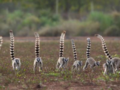 马达加斯加的环尾狐猴在森林里发出一系列声音来沟通...