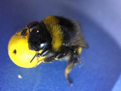 作为训练过程的一部分,一只假的塑胶熊蜂被用来向真...