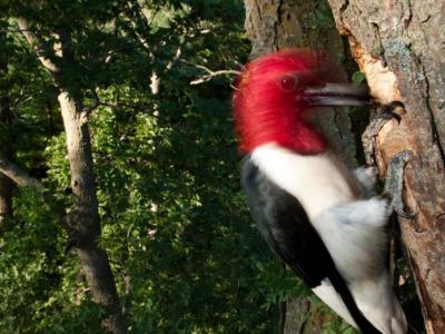 内布拉斯加州的一只红头啄木鸟正在树上干活。 PHOTOGRAPH BY JOEL SARTORE 哥...