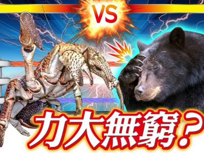椰子蟹(左)的夹力比黑熊(右)的咬力还要大。 冈慎一郎以野生的椰子蟹作实验...