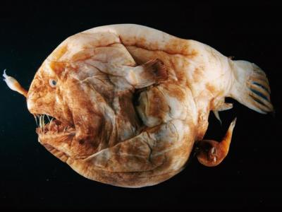 右下角是一只连接在雌鮟鱇鱼身上的雄鱼,藉由体外授精完成传宗接代。 PHOTOGRAPH...