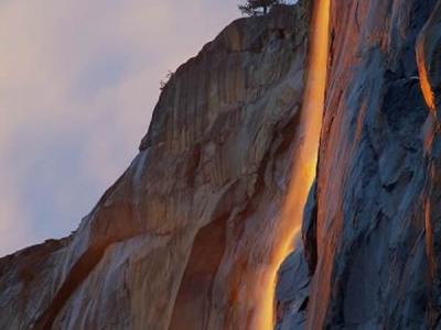 每年有几天,加利福尼亚州约塞米蒂国家公园那座高2000英尺(609.6米)的马尾瀑布会...