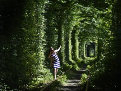 乌克兰隐世小镇铁路美景 茂林长廊如浪漫