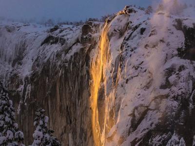 美国加州优胜美地国家公园惊现壮观“火瀑