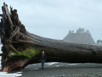 美国西海岸海滩一夜之间出现大量巨型红杉树 海滩上到处散落着被冲刷上岸的红杉...