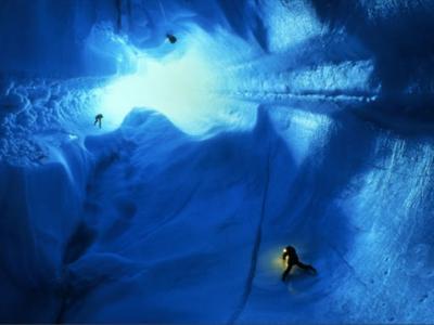 1.格陵兰冰盾 格陵兰冰盾 洞窟探勘人员用绳索深入格陵兰冰盾300英尺(约...