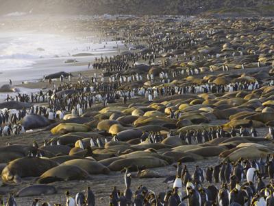 南大西洋安德鲁斯湾的南乔治亚岛上的海象和帝企鹅数量惊人 (神秘的地球...