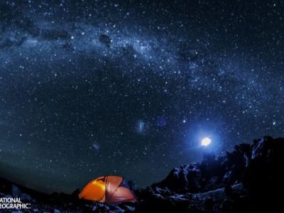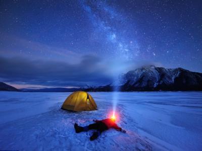 仅携带一盏头灯与必备的露营及摄影设备,加拿大33岁摄影师维克多·吕雷以自拍的形...
