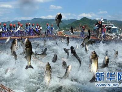 9月21日,渔民和着号子慢慢收网,被包在网里的鱼纷纷跃出水面。 9月21日,渔民...