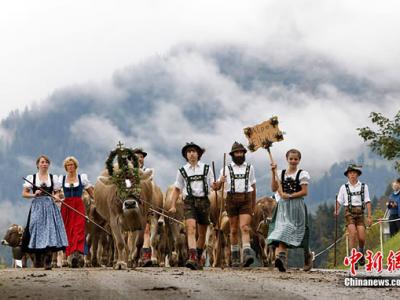 德国奥博斯托芬举行传统的赶牛仪式 德国奥博斯托芬举行传统的赶牛仪式 当地时...