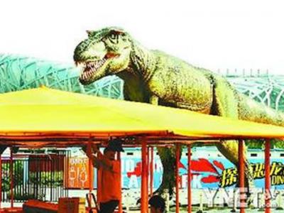 “恐龙”逛鸟巢 昨天下午,奥运中心区北侧的广场上出现了几只十米高的巨大橡...