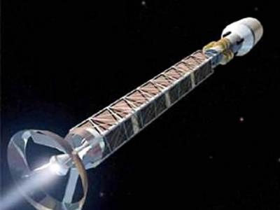 这是美国宇航局马歇尔空间飞行中心的研究人员们绘制的一张未来使用反物质燃料驱动...
