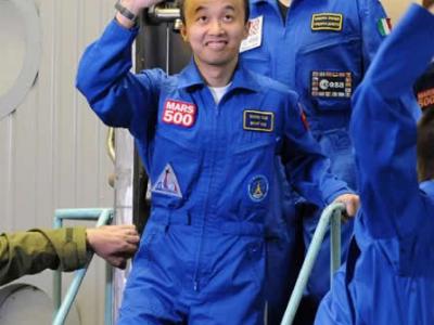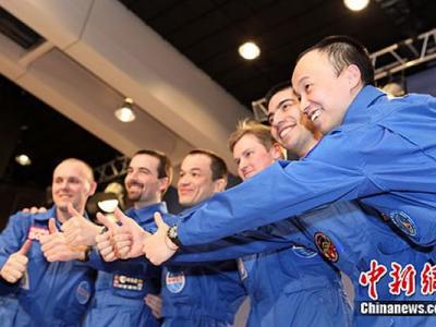 人类首次载人登陆火星模拟实验“火星500”圆满完成。图为11月8日,王跃与另5名志...