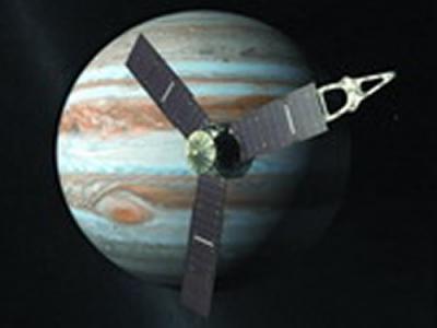 美国发射朱诺号木星探测器 2016年抵达木星 示意图:在木星轨道运行的朱诺探测...