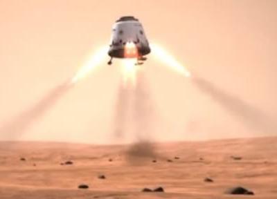 “龙”式飞船在火星上进行软着陆的模拟图 美国国家航空航天局正在与空间探索技术...