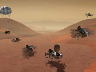 NASA计划将蜻蜓号送到提坦寻找生命迹象。蜻蜓号设计成旋翼飞行器,更有利于在提坦进...