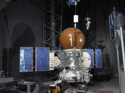 维加号登陆器的宇宙飞船主体和登陆装置的工程模型,位于维吉尼亚州的史蒂文史蒂文....
