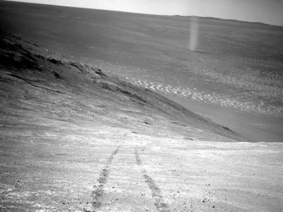 机遇号拍摄了尘卷风发生的一刻。机遇号降落在子午线高原的首张...