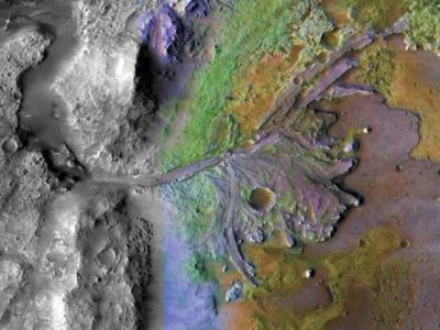 耶泽罗火山口。东北流沙。哥伦比亚山脉。NASA把24亿...