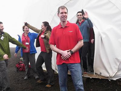 科学家在夏威夷毛纳罗亚火山展开实验。 一行人将“重返”地球。图为他们早前入...