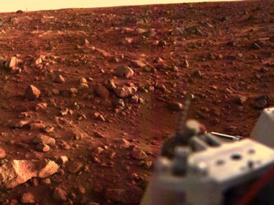 由海盗1号的照片可见到一望无际的红尘土 Viking 1于1976年7月20日所拍的第一张...