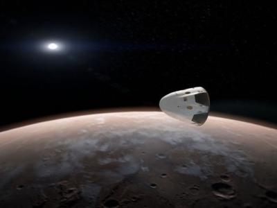 SpaceX计划把“红龙”送上火星。图为构想图。 “红龙”首次任务不会载人到火星...