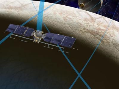 艺术示意图:正在木星系统进行考察的木卫二探测器。美国宇航局计划中的该探测器将...