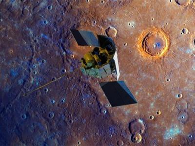 示意图:正在水星轨道进行考察的美国宇航局“信使号”探测器 (神秘的地球报道)...
