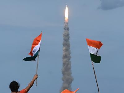 2023年7月14日,印度空间研究组织(ISRO)运载月船3号的火箭升空。(神秘的地球uux.c...