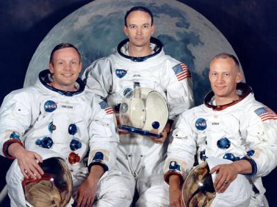 人类登月50周年:阿波罗11号三位宇航员阿姆斯特朗(左)、奥尔德林(右)和柯林斯(...