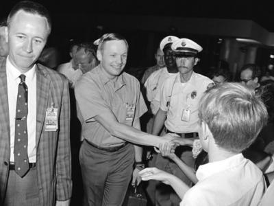 阿姆斯特朗离开隔离室后与迎接民众握手(神秘的地球uux.cn报道)据ETtoday(张方瑀...