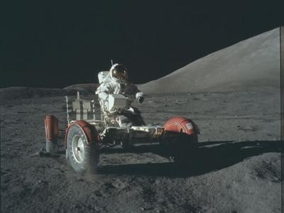 阿波罗17号:太空人在月球驾驶月球车。阿波罗16号:太空人登陆月球后,准备展开探索...