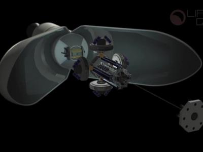 火箭配备月球升降机的太空站,送到不受引力影响的拉格朗日点后释出。太空站沿缆索...