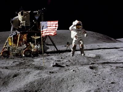 站在月球表面的美国宇航员 阿波罗17号的乘员组:指令长尤金·塞尔南,指令/服...