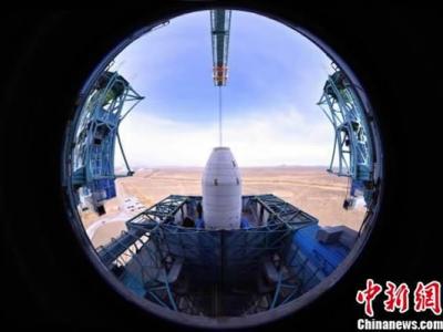 发射前夕,星箭对接完毕,发射塔架工作平台正在缓缓合拢。 初冬时节,大漠戈壁中...