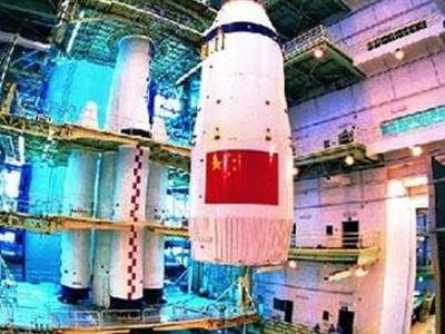 长征二号F火箭垂直总装 天宫一号发射实验队队员正在进行最后的装箱工作 用于...